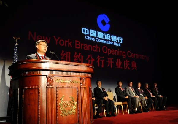 六月五日,中国建设银行董事长郭树清在中国建设银行纽约分行开业典礼上致辞。当日,中国建设银行纽约分行在纽约曼哈顿举行开业典礼。新华社发