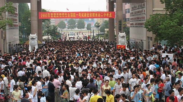 6月7日,在随州二中考点,参加高考的两千多名考生首场考试完毕后走出考场。 (本报记者 杨闻名摄)