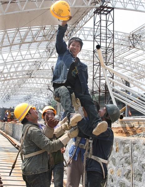 工程快完工了,安徽淮南施工队的师傅们,把胜利喜悦记录在工地,把辛劳汗水洒在工地(左图)。