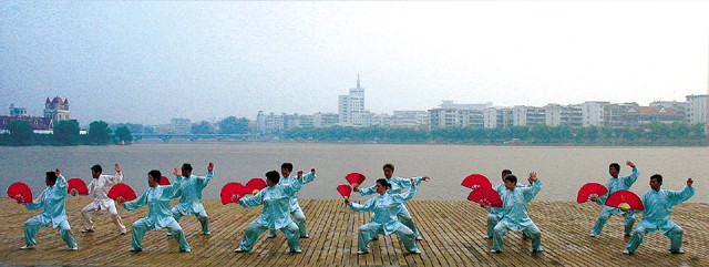 昨日清晨,热爱太极运动的市民在随城山公园外滩新建的滨湖广场练功(上图)。