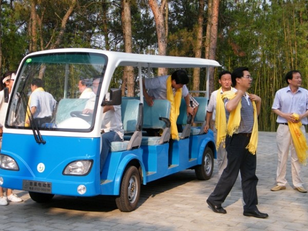 近日,炎帝神农故里风景区投资8万元,购进2台13座电动游览车,在环核心景区外环道路为游客代步,受到游客青睐,同时也优化了景区服务环境。 (龚承斌摄)