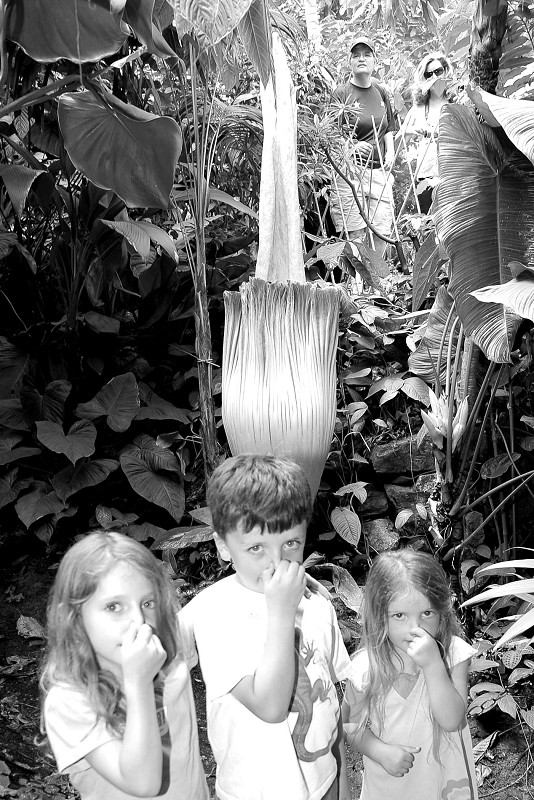 6月19日,在美国加利福尼亚州圣马力诺市的亨廷顿图书馆热带雨林植物馆,一株俗称“死尸花”的巨魔芋在这里开放。巨魔芋原产苏门答腊岛。它是世界上最臭的花,也是最大的花,盛开时散发出如尸体腐烂般的恶臭。 (新华社发)