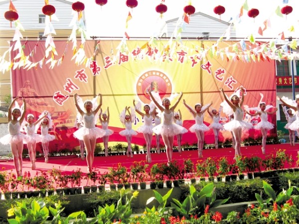 随州市第三届编钟美育节23日在经济开发区淅河镇小学拉开序幕。图为曾都区清河路小学学生正在表演芭蕾舞《自由飞翔》。 (本报记者 邱学锋摄)