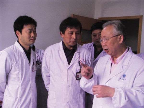 广水市二医院在对接大武汉、融入武汉城市圈中,与武汉协和医院建立了长期协作关系,经常邀请协和医院专家教授来该院坐诊、查房并指导高难度手术。图为武汉协和医院党委副书记、泌尿外科教授曾甫清到该院泌尿外科对医师进行传帮带。 (程晓斌 摄)