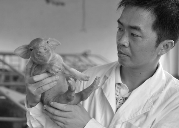 6月24日,在广西畜牧研究所种猪场,研究人员在查看雌性仔猪。广西大学动物繁殖研究所经过4年多的研究实验,成功培育出我国首批分离X、Y精子性别控制的仔猪,填补了我国在该领域的空白。