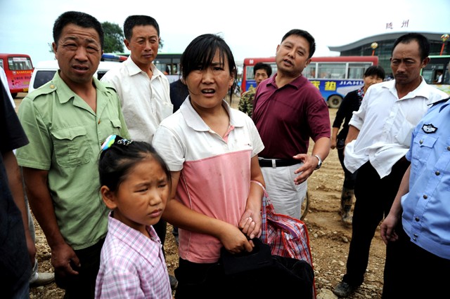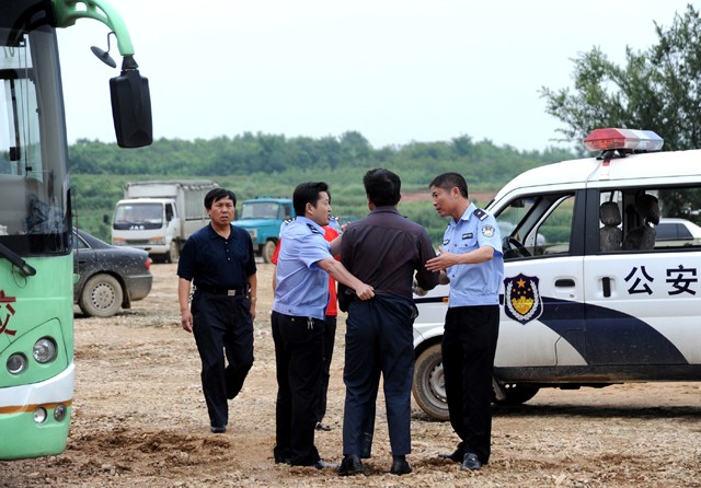 六月三十日,随州新火车站广场,一名外地女乘客痛斥摩的宰客,说好从随州旧火车站到新火车站三元钱,结果到了摩的却要收三十元钱(上图)。宰客的摩的被女乘客认出,现场被市经济开发区公安分局民警逮住(左图)。(本报记者 李文军 摄)