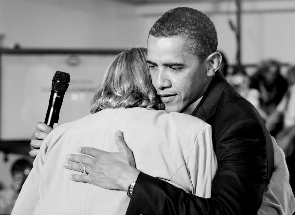 7月1日,在美国弗吉尼亚州,美国总统奥巴马拥抱一名53岁的癌症患者。当日,奥巴马在这里与民众代表就医疗改革计划进行现场讨论。奥巴马表示将全力推行医疗改革,使美国人享受良好的医疗福利。 (新华社发)