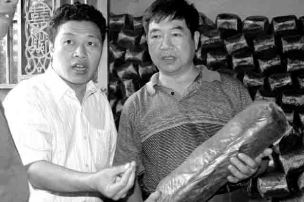曾都区食用菌协会会长戚钦彪(右),虽已年近半百,但他仍不辞劳苦地奔波在农村各地,指导农民食用菌增收。(本报记者 陈德友 摄)