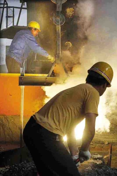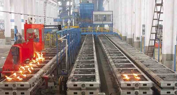 湖北全力铸造有限公司积极做好防暑降温工作,迎战高温保生产目标(左图)。据了解,该公司年产30万吨汽车铸件基地一期工程投产后,呈现出产销两旺的局面,产品批量出口美国、加拿大、英国、法国等。上图为现代化的静压生产线。(本报记者 杨闻名摄)