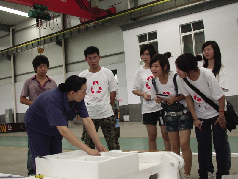 烈日当空,武汉科技大学艺术设计学院的师生一行19人,毫不犹豫地选择步行前往暑期社会实践的第一站。半小时后,实践队到达齐星公司,衣衫汗透却无人埋怨。带队的辅导员赵凯做出排队手势,一支整齐安静的小队迅速形成,跟随讲解员走进了齐星公司。