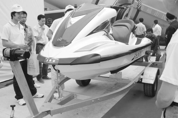 高新科技在我市大中型企业广泛应用。图为湖北三江船艇科技开发公司开发生产出的新产品。(本报记者陈德友摄)