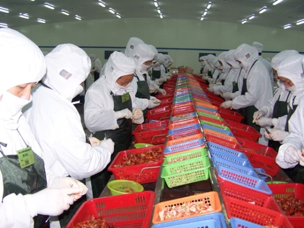 湖北大自然农业实业有限公司投产后,不仅使广水市5万亩小龙虾不愁销路,而且销价也比去年好,同时,也成为该市出口创汇新的经济增长点。目前,该公司已拿到向美国出口虾仁30个货柜订单。图为公司员工忙着剥虾仁。