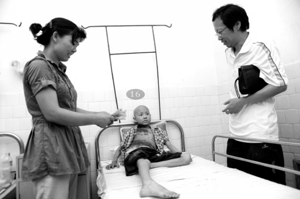 上图:7月7日,陈汉青来到曾都医院探望彭田昊,将自己刚刚收到的2500元暑期数学培训费全部捐给彭田昊治病。彭田昊家住曾都区南郊瓜园社区,今年10岁,母亲种地,父亲打工,去年10月查出患有淋巴癌,已花费13万元医疗费。此前陈汉青已为彭田昊捐过1000元钱。