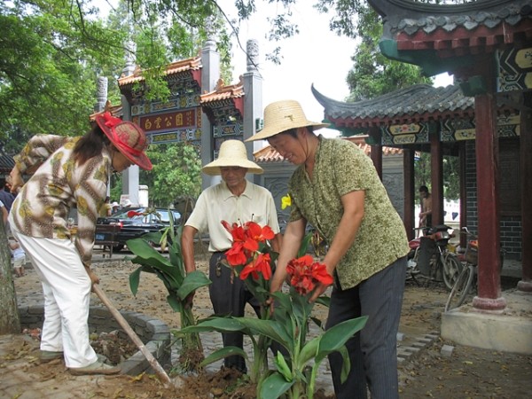 7月13日,市园林局职工顶着烈日在白云公园外围栽植花木。据了解,随城白云公园改造工程渐近尾声。改造后的白云公园,功能更加明确,景观更加漂亮。(本报记者 杨闻名摄)