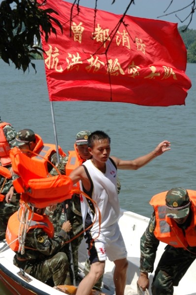 昨日上午,市消防支队在白云湖上进行了一次抗洪抢险水上救援演练活动。这次防洪抢险演练主要检验消防官兵应对突发性自然灾害的排险能力。
