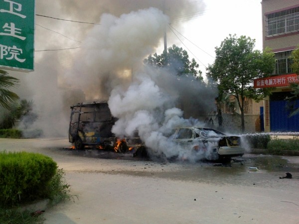 本报讯 记者许静、通讯员邓磊报道:7月18日,曾都区均川镇镇区发生车辆追尾事故,一辆轿车撞上一辆公汽引发大火,两辆车均被大火烧毁,所幸没有人员伤亡。