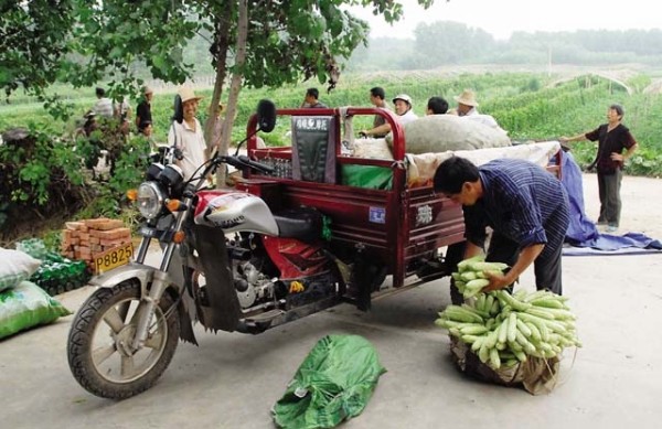 曾都区万店镇农民以塔湾村为依托,根据市场需求调整种植结构,发展大棚蔬菜。目前,全镇已发展大棚蔬菜1.5万亩,每亩增加收入4000余元。图为农民正装车外运地产蔬菜。 (本报记者 孙洪涛 通讯员 付德恕摄)