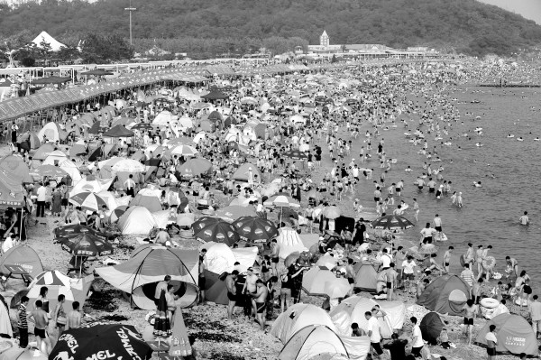 7月19日,大连市区内最大的海滨浴场——付家庄海滨浴场游客爆满。入伏以来,持续出现36摄氏度的高温天气,每天有数万名游客和市民拥入大连各海滨浴场,尽情享受海边的清凉和惬意。 (新华社发)
