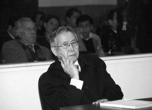 7月20日,在秘鲁利马,秘鲁前总统藤森在最高法院特别法庭上接受审判。秘鲁最高法院特别法庭当日以 “盗用公款罪”,判处前总统藤森7年半监禁,并处以300万索尔(约100万美元)的罚款。 (新华社发)