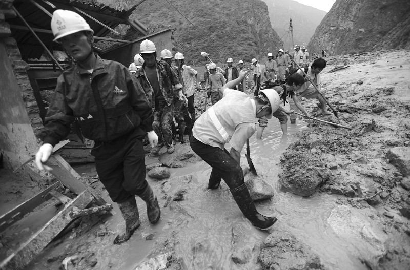 7月25日,四川省康定县舍联乡干沟村响水沟,武警战士和当地群众继续在现场搜寻。当日凌晨,挖掘机、推土机和运输车等大型救援设备进入四川康定“7·23”泥石流灾害中被泥石流破坏道路现场展开搜救和清理工作,此外,武警战士和当地群众继续在大渡河沿线和灾害现场进行搜救。 新华社发
