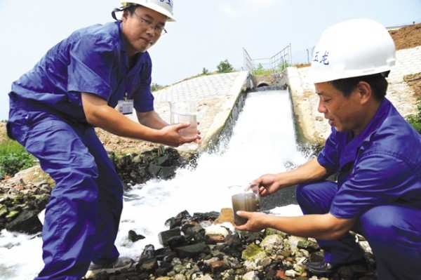 7月25日上午9时30分,市污水处理厂工程师检测位于白云湖水库下游的排污口水样,COP值为13,远远低于国家污水排放标准一级A标准。