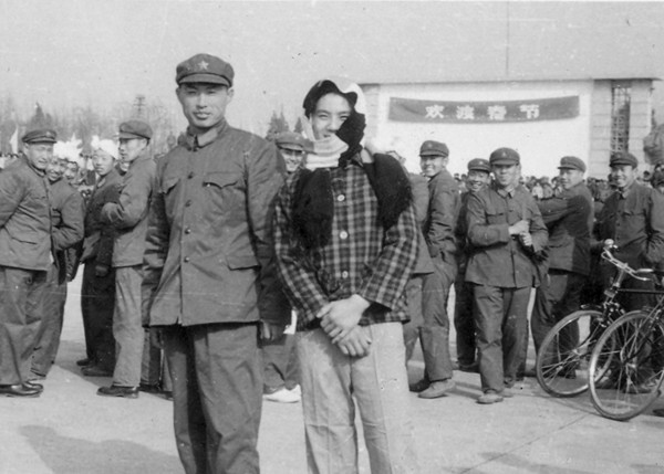 ▲1984年,邹守明和一位“女同志”合影,原来这是一位侦察兵男扮女装。