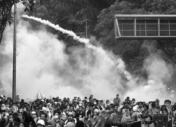 8月1日,大批民众在吉隆坡举行示威游行,抗议国内安全法。警察发射了催泪弹,用水枪驱散人群,并逮捕了数十名示威者。 (新华社发)