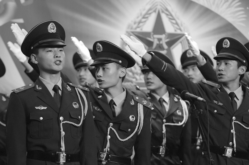 8月1日,武警安徽省边防总队的战士们在演唱会上演出。当日,安徽合肥举行“军歌嘹亮”演唱会,庆祝中国人民解放军建军82周年。武警安徽省边防总队的官兵和驻地群众共同参与了此次演出。 新华社发