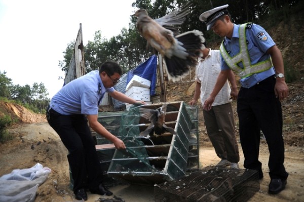 7月26日,省公安厅交警总队高管支队11大队在汉十高速何店入口处查获邓某非法运输一车野生动物。该支队随后将情况通报市林业公安局及市野生动植物保护站,依法对邓某进行了处罚和没收。7月28日,在高管支队11大队和市林业局执法人员的监督下,将这些劫后余生的野生动物全部放生。