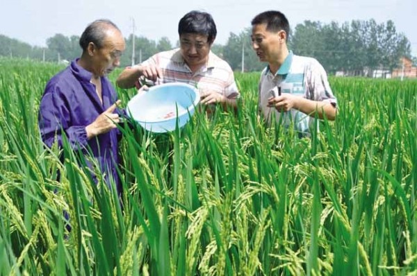 随县安居镇组织力量大打防病治虫围歼战,全镇五点五万亩水稻亩均施用零点六公斤的灭虫害农药。图为农技人员在稻田进行病虫害跟踪监测。