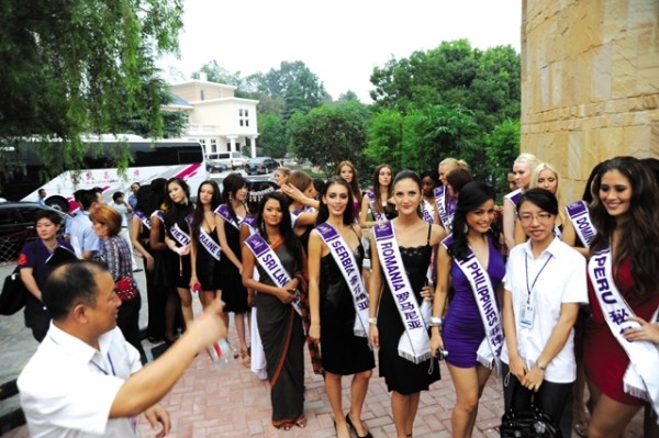 8月11日,2009国际旅游小姐大赛巡游随州,30名来自各个国家和地区的佳丽的到来,吸引了许多粉丝和摄影爱好者拍照。 (本报记者 李文军摄)