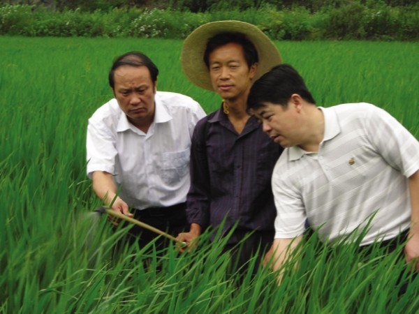 柳林镇近日结合实际提出了户均增加1头猪、500袋袋料香菇、亩均增加50公斤稻谷、人均增收300元的“1553”工程发展目标,为全年农民增收奠定了坚实基础。图为镇委领导深入农户查看稻谷防虫治病情况。(李大学 程立键摄)