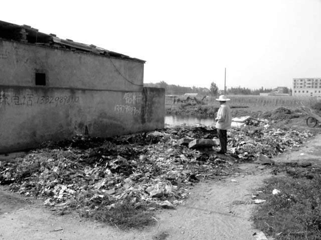 在南郊擂鼓墩二组,一堆生活垃圾已经被堆放了40余天无人清理。正值盛夏,这里臭味扑鼻,苍蝇乱飞,让附近居民难以忍受。