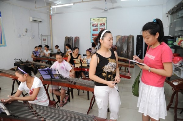 暑假里,随州城区中小学生生活丰富多彩,有的参加文体活动,有的外出旅游,他们在参与中增长了知识。图为参加暑期社会实践活动的大学生在城区一少儿古筝培训班作社会调查。 (本报记者 李文军摄)