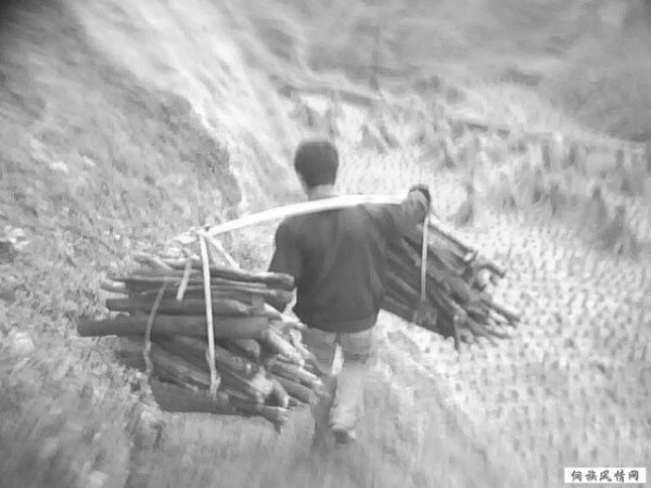 我们砍的多半是杂木,由于木质硬,看起来柴不多,但是很沉肩。挑不了多远,我便要停下来小憩。此时此刻,父亲总要唠叨几句: “不听,现在没劲了吧?”我也开始后悔了。这个时候,父亲便不顾自己的劳累,要我呆在路边的树荫下休息,而他自己却挑着很沉的柴不停地向前走去。走了较远的一段路后,父亲把自己肩上的柴放下来,又急匆匆地回到我休息的地方,挑起我的柴往前赶。赶到自己原来放柴的地方,父亲将我的柴放下,只稍微休息一下,抹抹汗,便把我安排在一处荫凉的地方,拿出饭团,取下身上的水壶,倒水给我喝,并告诫我不要乱跑,他又挑着自己原来的那担柴,向前走去。如此循环,直到把两担柴都挑回家。看着他汗流浃背的身影,在蜿蜒崎岖的山道上艰难前行,我的心里犹如千万条小虫爬过一般地难受。有几次我坚持一定要自己挑完全程,并且以一个人呆在那有点怕为理由,可父亲依然不肯。只是在我还没反应过来时,把我的柴捆成十字架样,横在他的柴担上,咬咬牙,挑着两担子柴,蹒跚地向前走。那一刻,泪水模糊了我的双眼……