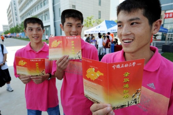 9月2日,三兄弟持录取通知书准备到各自专业报道,他们专业分别是石油工程、土木工程、化学工程与工艺。当日,三胞胎兄弟赵凌霄、赵凌汉和赵凌云来到中国石油大学(华东)的青岛校区报到,开始了他们同所大学的学习生活。这三胞胎兄弟家住山东省高密市柏城镇小河崖村,在今年的高考中分别考出了616分、617分和618分的“三连号”成绩,一度成为当地家喻户晓的“高考明星”。 (新华社发)
