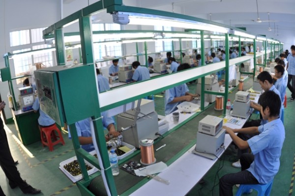 为提高学生的动手操作能力,让学生学到过硬的专业技能,曾都职业高中在今年暑假期间投资180万元,兴建了计算机、电子、焊接、服装等6个实习实训中心。图为该校学生在新建的电子生产线实习的情景。