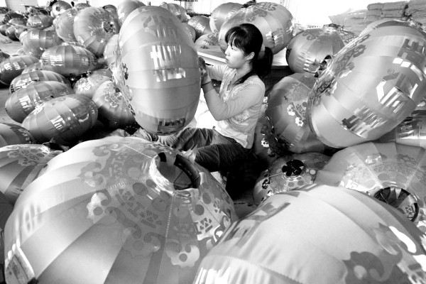 九月十日,合肥市庐阳区一家灯笼生产企业正在加紧制作大红灯笼。在国庆节即将到来之际,这家企业的数百名工人加班加点,抓紧为全国各地的客户赶制国庆灯笼。(新华社发)