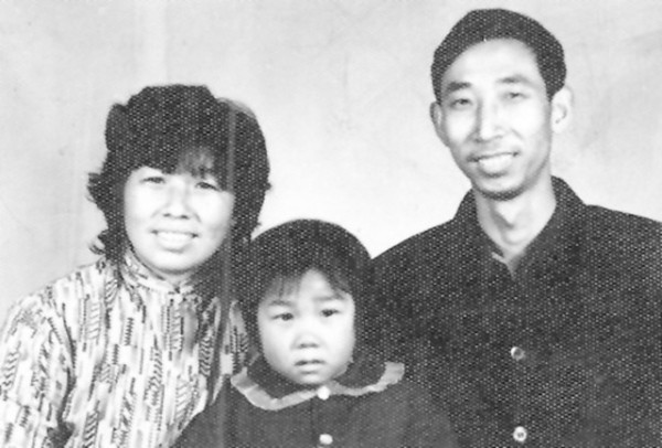 ③上世纪80年代初,张光成一家三口合影,他穿上了当时时髦的中山装。