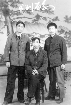 ②上世纪70年代末,张光成(中)与同事分别穿上流行绿军装照了张留念照。