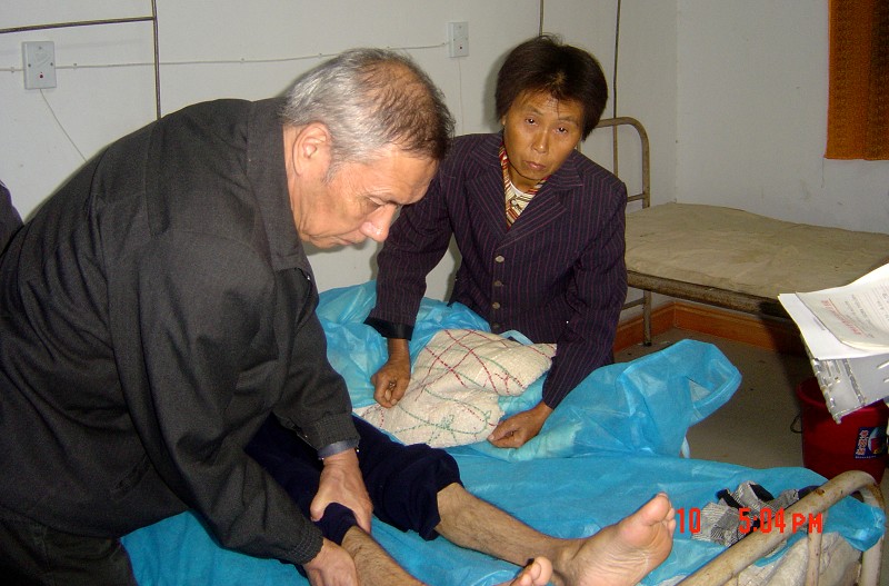 九月十日到十一日,武汉大学中南医院教授桂希恩专程来随县均川镇中心卫生院,了解艾滋病人的身体和生活情况,并为二十名重症艾滋病患者诊治。据了解,这是桂希恩教授第十二次来随州为艾滋病人治病。(夏治华 摄)