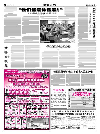 近日,学校甲型H1N1流感防控形势更为严峻,记者走访了在校少年儿童近4000名的曾都区实验小学,感受到该校防控甲型流感、谋划学校长远发展紧张而有序的氛围。 构筑立体防线