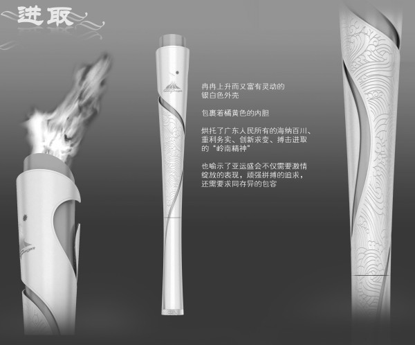 9月17日,广州亚组委公布了第16届亚运会火炬形象的两个备选方案:《潮流》和《进取》,并公布了网络投票活动的内容及细则。“亚运火炬我选我爱”活动正式拉开帷幕。左图为火炬《潮流》的形象。右图为火炬《进取》的形象。