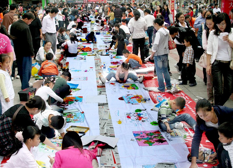 9月19日,随州市购物中心、市美术书法家协会、随州第一画苑联合组织了“巴拉巴拉杯”百米长卷大型少儿书画赛,近两百名孩子参加了此次活动,以此来庆祝新中国成立六十周年。 (本报记者 杨闻名 苏明摄)
