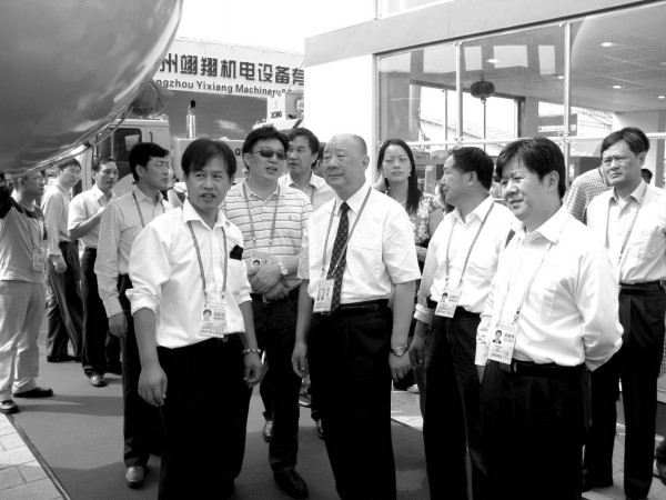 ▲副省长田承中(前中)、省商务厅领导参观我市第104届广交会专用汽车展会。