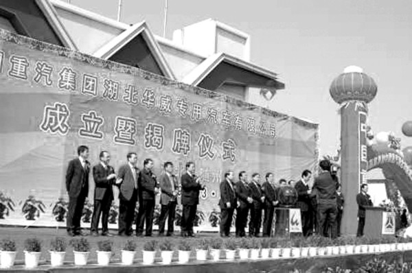 ▲中国重汽集团湖北华威专用汽车有限公司成立及揭幕仪式现场,市长刘晓鸣作重要讲话。