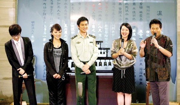 图一:毕福剑(右一),央视主持人孙晓梅(右二)、著名歌手江涛(右三)的现场发挥让节目录制现场笑声不断。