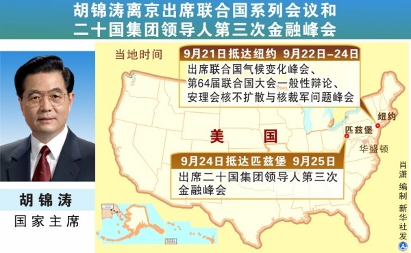 ·胡锦涛离京出席联合国系列会议和二十国集团领导人第三次金融峰会