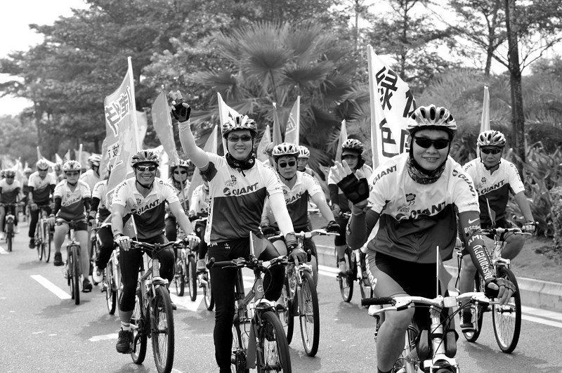 9月 22日,海口市近400名自行车爱好者和市民进行自行巡游活动。