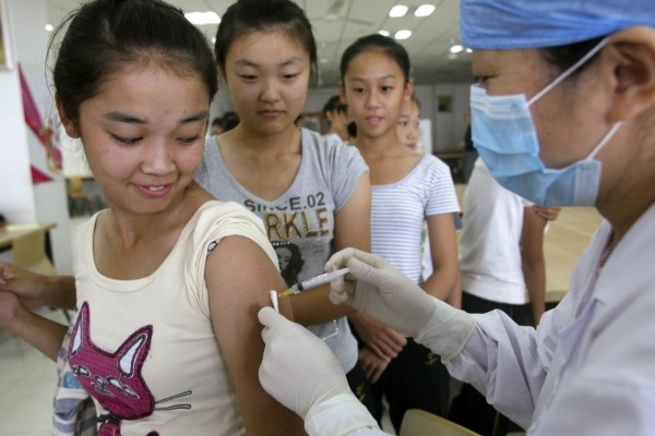 9月25日,济南市医务人员为第十一届全运会开闭幕式的参演人员接种甲型H1N1流感疫苗。据介绍,目前山东省已获得16.2万支甲型H1N1流感疫苗,这些疫苗将被优先用于参与全运会重大活动的人员和重点人群的应急接种。 (新华社发)